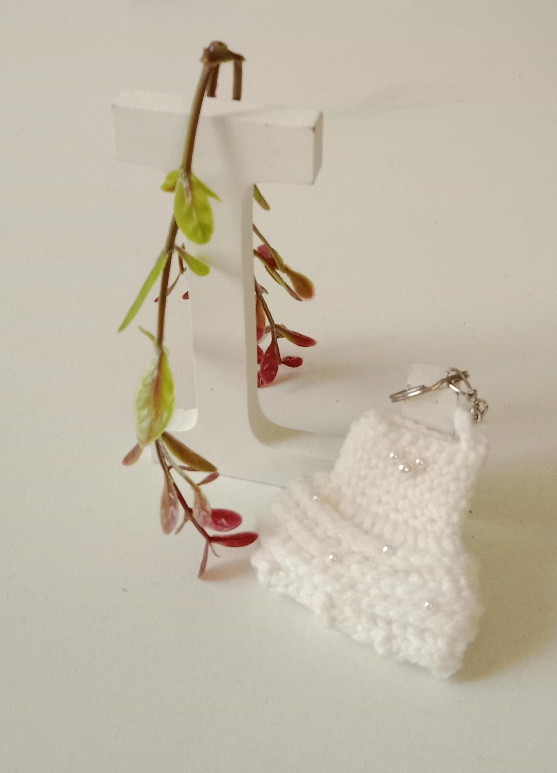 Add a charming touch to your keys or bags with these White Dress & Black Suit Crochet Keychains. The White Dress medal features an elegant dress in white with intricate crochet stitches forming a flowing skirt, while the Black Suit medal showcases a formal suit with jacket and tie, highlighting fine crochet craftsmanship. These White Dress & Black Suit Crochet Keychains are perfect for adding style and personality to your accessories.