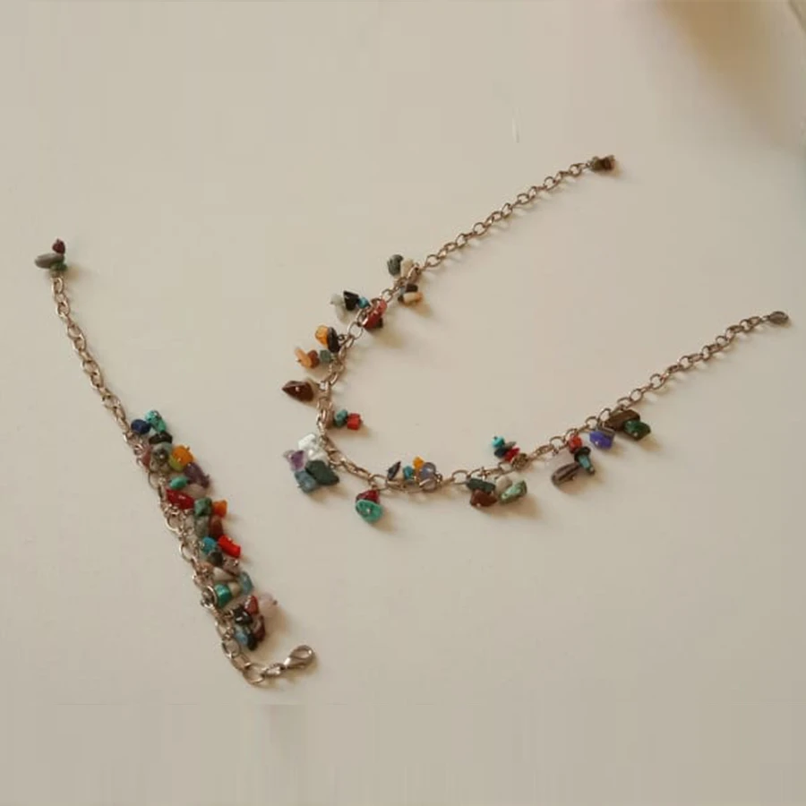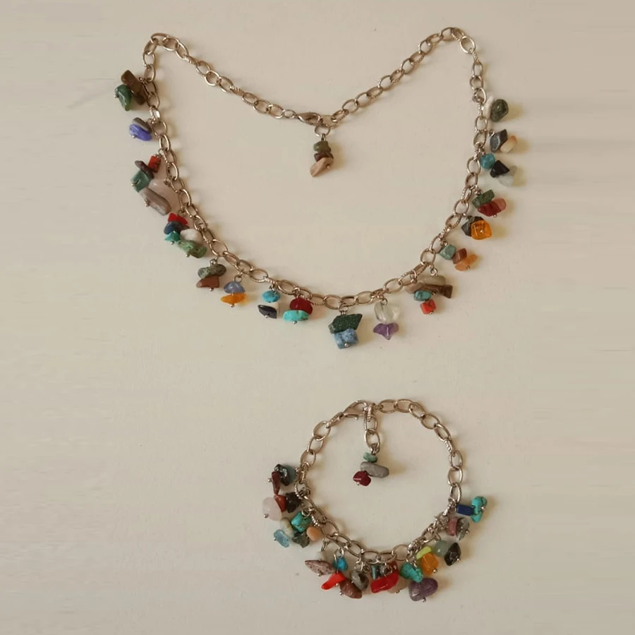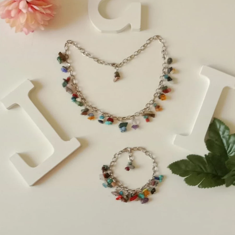 Indulge in the lively and eye-catching design of this Colorful Stones Bracelet and Necklace Set, a one-of-a-kind handcrafted accessory perfect for adding a pop of color to any outfit. This Colorful Stones Bracelet and Necklace Set brings elegance and personality to your style.
