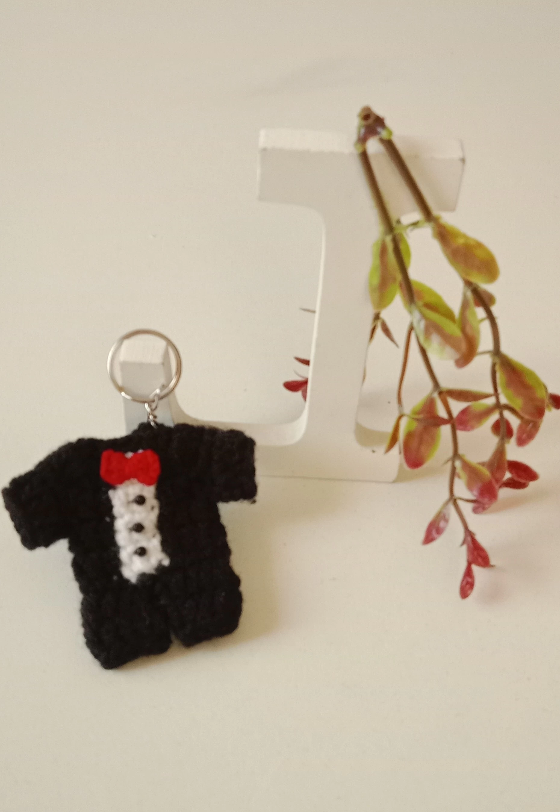 Lightweight and comfortable to wear, these keychains come with a sturdy metal ring for easy hanging. Perfect as a thoughtful gift for friends or family members on special occasions, these White Dress & Black Suit Crochet Keychains combine elegance, durability, and charm. Available now at KROOCHEH. Contact us at 0543225371 to get yours today!